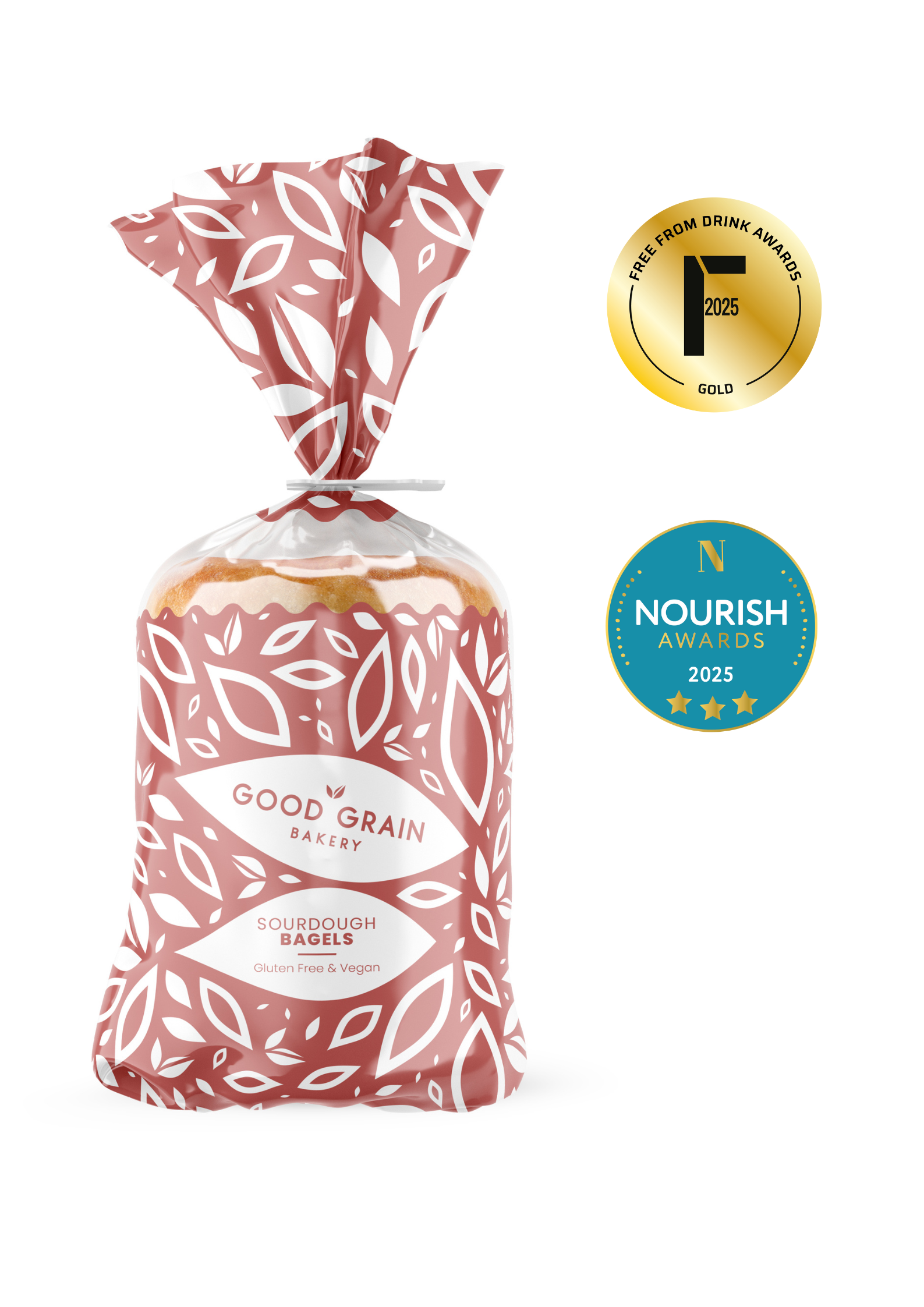 A true organic gluten free & vegan sourdough bagel. Made without oils, gums, additives, preservatives, gluten, wheat, eggs, dairy, nuts, soya and sesame.